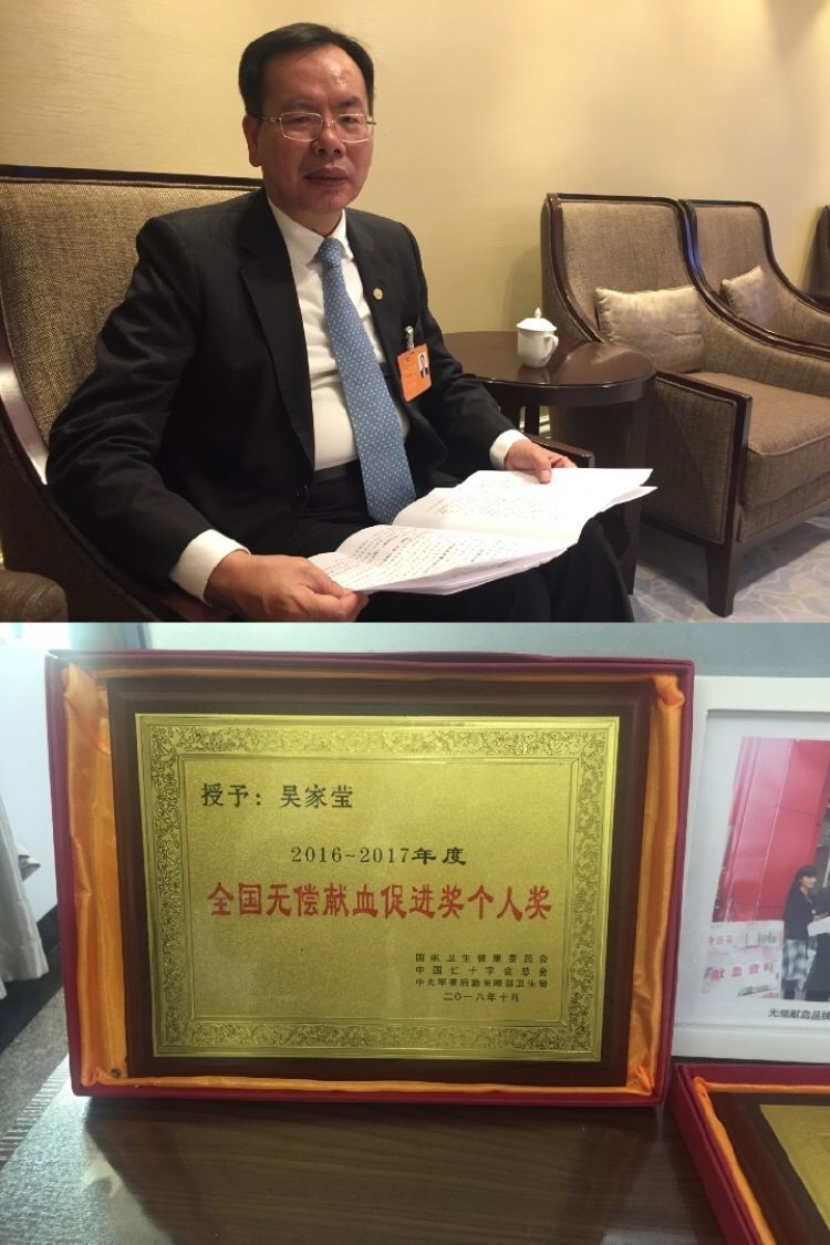 上圖:廈門市臺商投資企業(yè)協(xié)會會長吳家瑩。下圖:吳家瑩獲得的“全國無償獻血促進獎個人獎”。新華社記者 許雪毅 攝