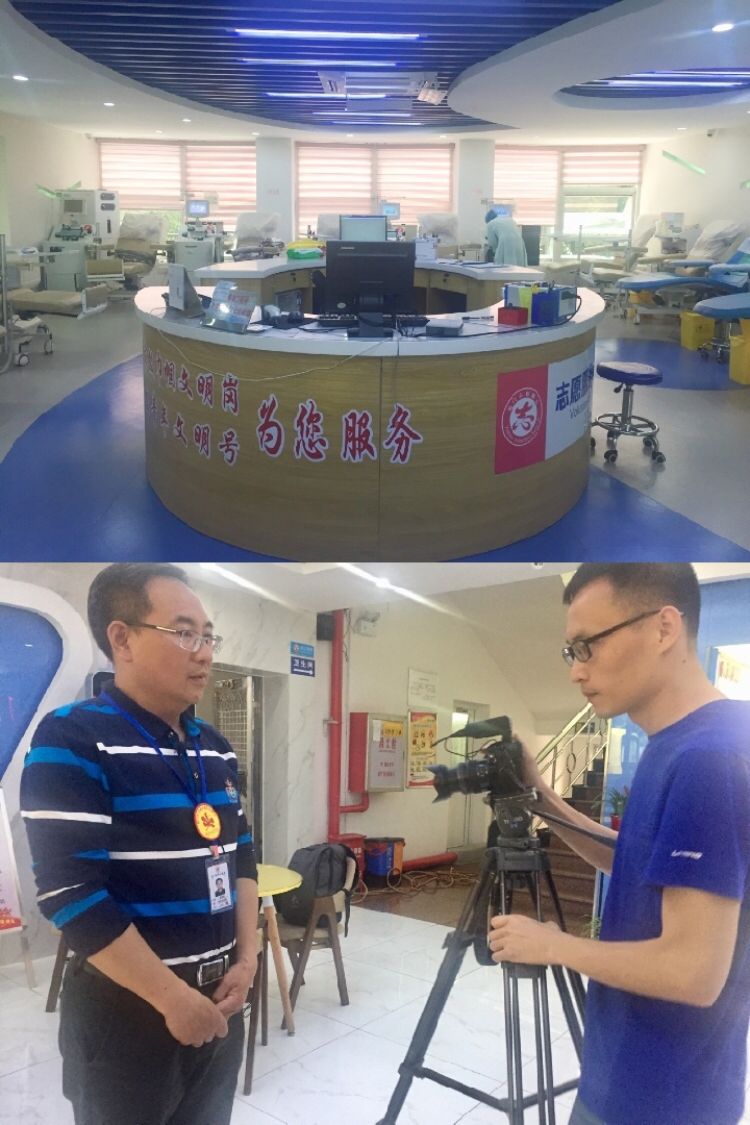 上圖:廈門市中心血站一角。下圖:廈門市中心血站主任曾曉新接受新華社記者采訪。新華社記者 許雪毅 攝