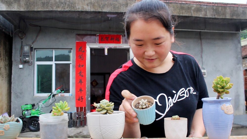 在尋烏縣丹溪鄉(xiāng)岑峰村,張荷花家讓記者眼前一亮——小院就在車來車往的縣道旁,本該積灰的地方卻沒啥塵土。房子雖是農(nóng)村少見的平房,但屋內(nèi)收拾得井井有條。低矮的院墻上,擺放著長勢喜人的多肉、蟹爪蓮、長壽花、玫瑰等植物,透露出主人的生活情趣。