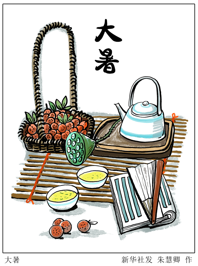 新華社天津7月20日電(記者周潤?。靶∈罱哟笫?,熱得無處躲”?!吨袊煳哪隁v》顯示,北京時間7月22日16時37分迎來“大暑”節(jié)氣。“大暑”即大熱,此時節(jié)熱浪滾滾,酷暑難熬。
