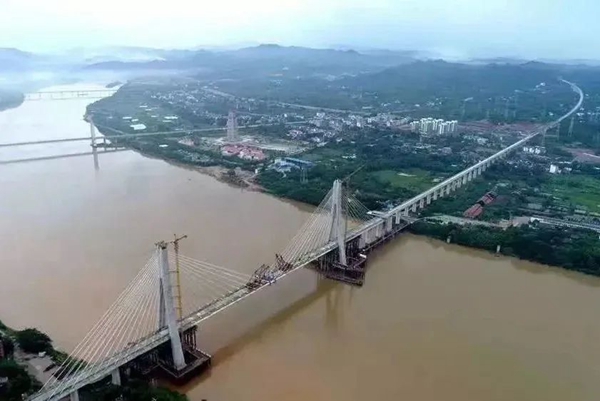 國內(nèi)首座時速350公里大跨度高速鐵路斜拉橋