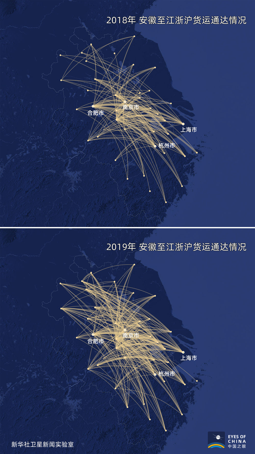 合肥維天運通信息科技股份有限公司擁有國內(nèi)規(guī)模最大的重型卡車“互聯(lián)網(wǎng)+物流”平臺,其平臺數(shù)據(jù)顯示,隨著安徽省16個地級市全部加入長三角城市群,2019年第四季度,由安徽運往江蘇、浙江和上海的貨運單量,較2018年同期增長約95%。