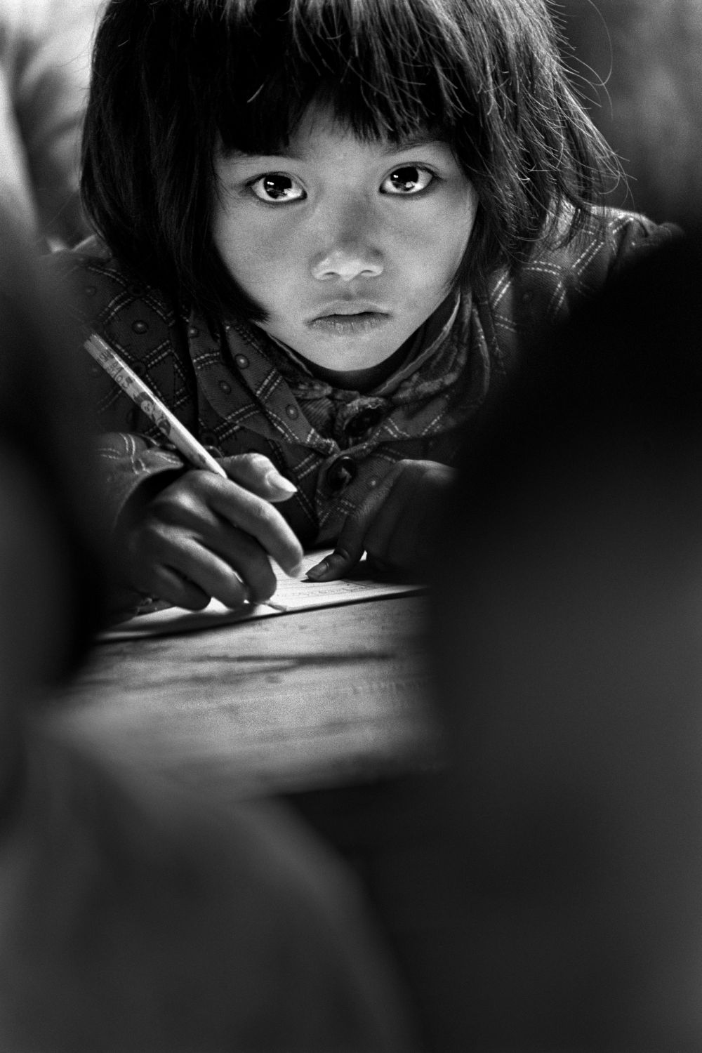 ↑ 這是四川大涼山彝族自治州昭覺縣一所縣城小學(xué)的孩子們正在上課(2004年11月8日拍攝)。
