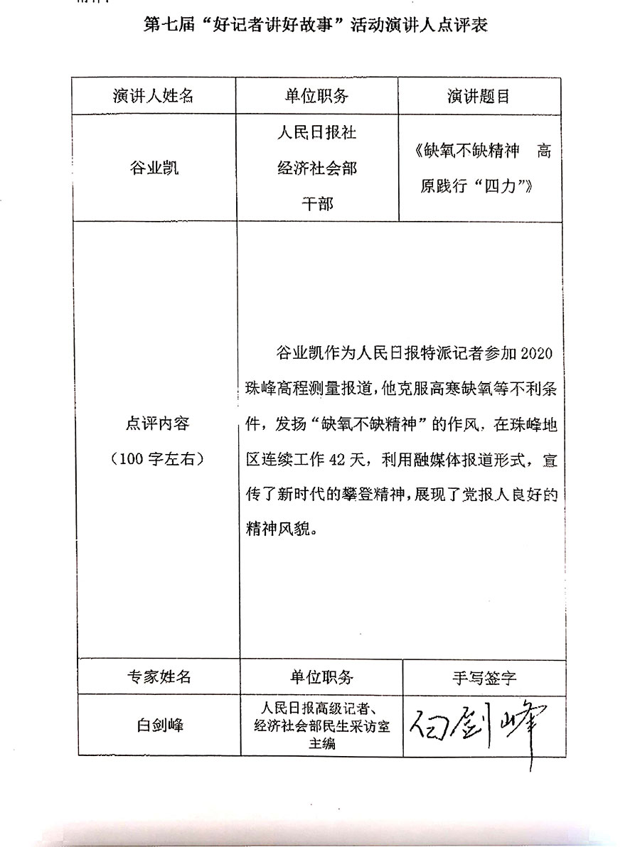 人民日?qǐng)?bào)谷業(yè)凱:缺氧不缺精神 高原踐行“四力”