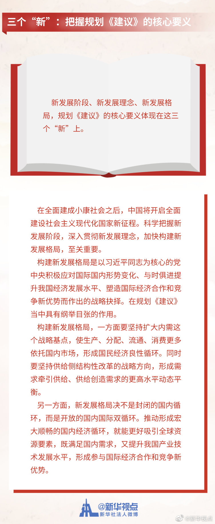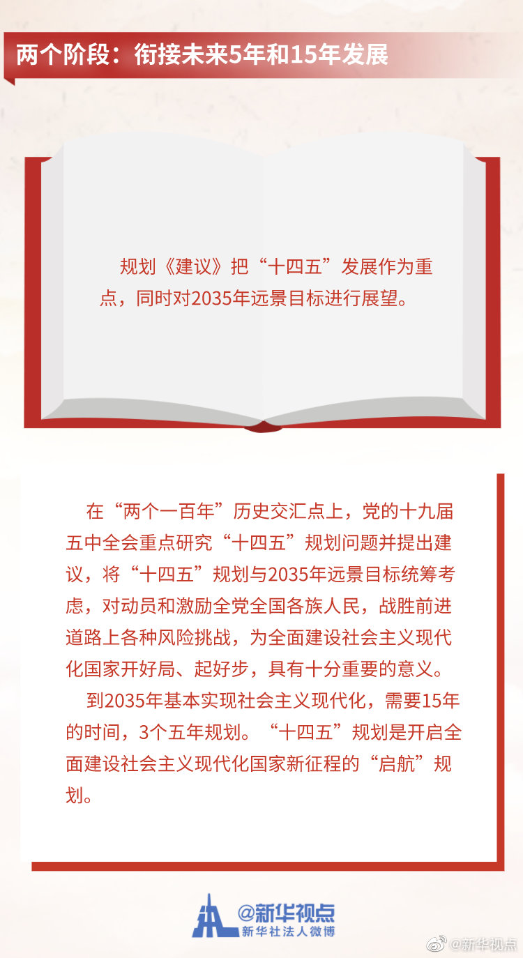 《中共中央關(guān)于制定國民經(jīng)濟(jì)和社會(huì)發(fā)展第十四個(gè)五年規(guī)劃和二〇三五年遠(yuǎn)景目標(biāo)的建議》3日公布。這份長約2萬字的文件,為未來5年及15年的中國發(fā)展勾勒藍(lán)圖。記者梳理出規(guī)劃《建議》中的“一二三四五”,為觀察中國發(fā)展走向提供一個(gè)獨(dú)特視角。