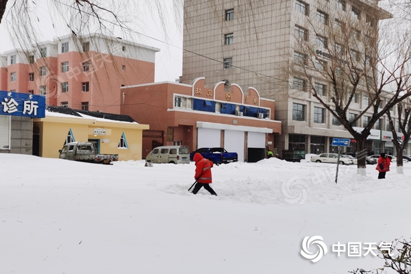 受強降雪影響,內(nèi)蒙古通遼市市區(qū)積雪深厚。(圖/楊旋)