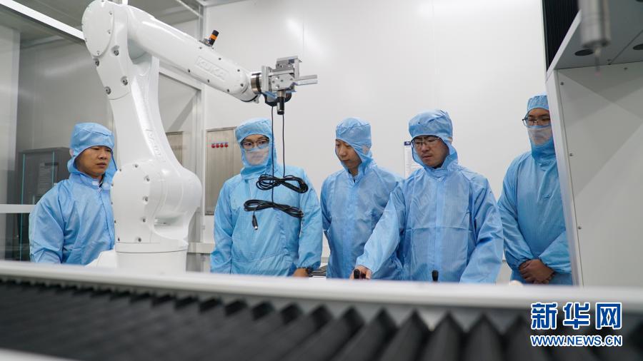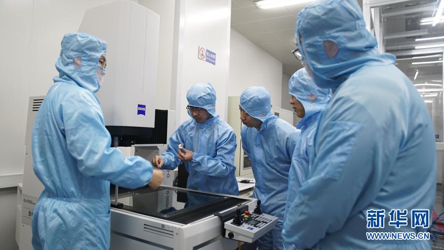 在中科院長春光機所,科研人員隋延林(中)和同事們探討科研方案(11月25日攝)。新華社發(fā)(王帆 攝)