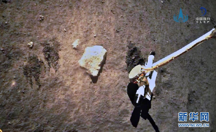 12月2日,嫦娥五號(hào)探測器在月球表面自動(dòng)采樣。