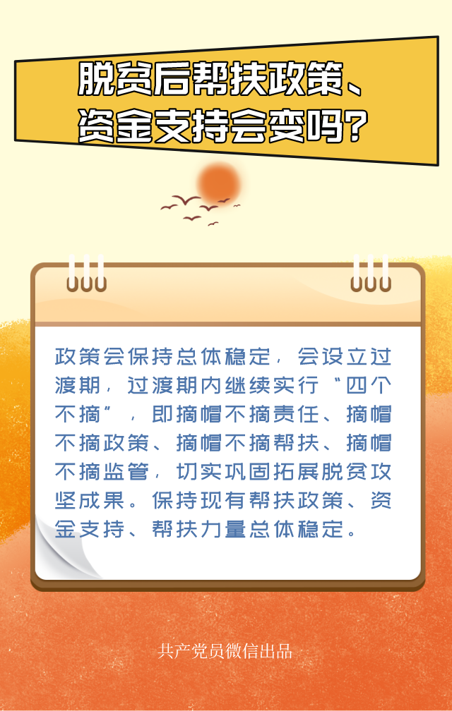 經(jīng)過8年持續(xù)奮斗,我們?nèi)缙谕瓿闪诵聲r代脫貧攻堅目標任務,現(xiàn)行標準下農(nóng)村貧困人口全部脫貧,貧困縣全部摘帽,消除了絕對貧困和區(qū)域性整體貧困,近1億貧困人口實現(xiàn)脫貧,取得了令全世界刮目相看的重大勝利。脫貧后是不是就沒有貧困問題了?脫貧后幫扶政策、資金支持會變嗎?萬一返貧,怎么辦?這些大家最關心的問題,都有明確答案。
