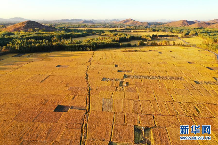 10月18日在河北省灤州市古城街道蔣莊村拍攝的稻田(無人機(jī)照片)。
