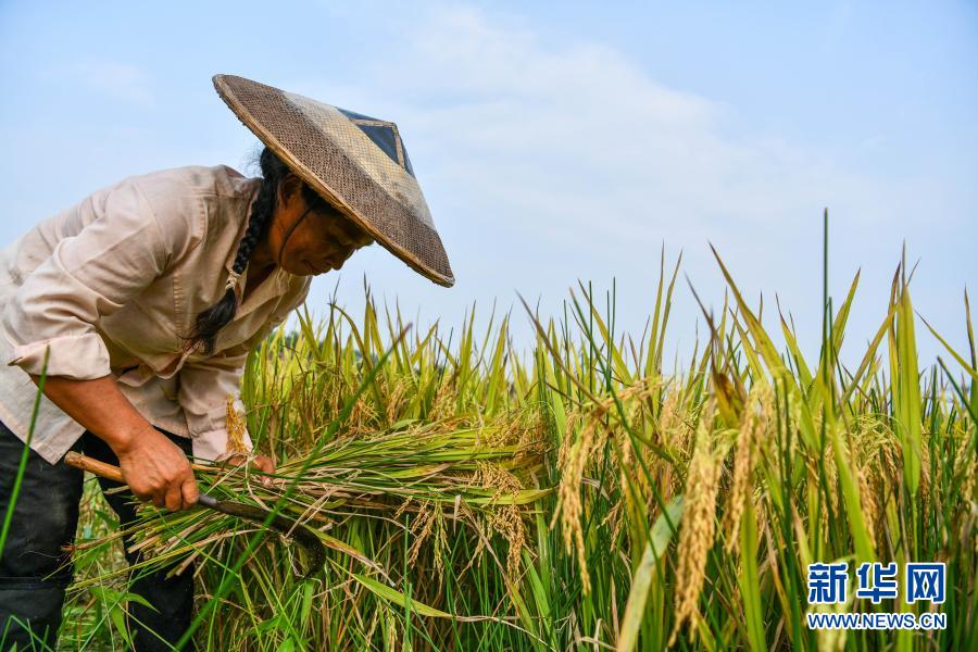 貴州省天柱縣高釀鎮(zhèn)上花村的農(nóng)民在收獲水稻(9月2日攝)。