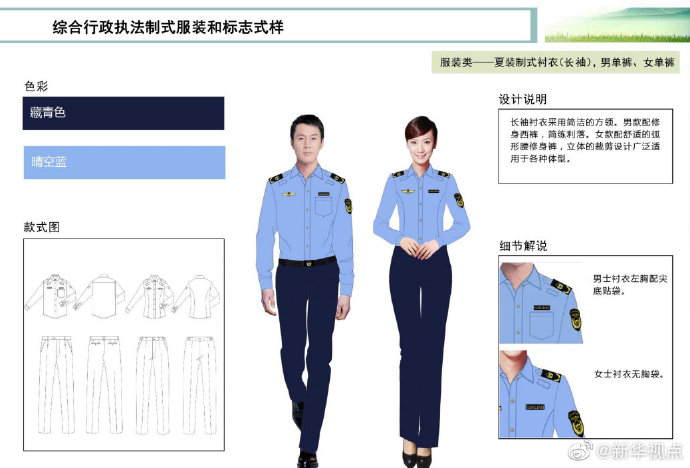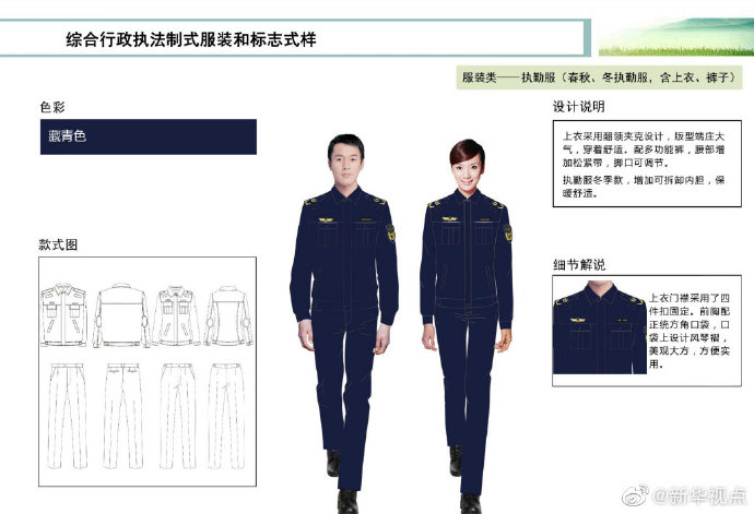 【這些綜合行政執(zhí)法部門(mén)將統(tǒng)一著裝,你喜歡嗎?】財(cái)政部、司法部日前印發(fā)《綜合行政執(zhí)法制式服裝和標(biāo)志管理辦法》,明確加強(qiáng)生態(tài)環(huán)境保護(hù)、交通運(yùn)輸、農(nóng)業(yè)、文化市場(chǎng)、應(yīng)急管理、市場(chǎng)監(jiān)管等綜合行政執(zhí)法制式服裝和標(biāo)志管理。這6支綜合行政執(zhí)法隊(duì)伍將統(tǒng)一著裝,不同執(zhí)法隊(duì)伍通過(guò)標(biāo)志中的名稱(chēng)和圖案加以區(qū)分,徹底解決長(zhǎng)期以來(lái)不同執(zhí)法部門(mén)著裝五花八門(mén)的問(wèn)題。來(lái)看看這些“新衣”預(yù)覽吧?。ㄓ浾呱赇叀钻?yáng))