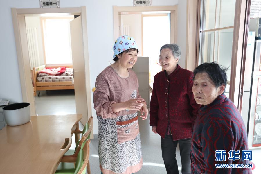 10月22日,西寧市城西區(qū)溫馨陽光托老所內(nèi),護(hù)理員張蓉霞(左)在與老人聊天。新華社記者 吳剛 攝
