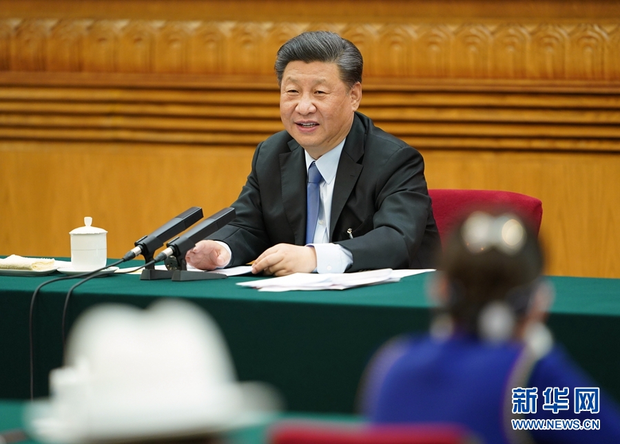 5月22日,中共中央總書記、國家主席、中央軍委主席習近平參加十三屆全國人大三次會議內蒙古代表團的審議。 新華社記者 謝環(huán)馳 攝