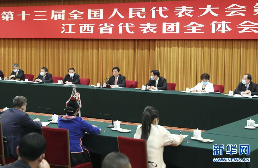 5月22日,中共中央政治局常委、全國(guó)人大常委會(huì)委員長(zhǎng)栗戰(zhàn)書(shū)參加十三屆全國(guó)人大三次會(huì)議江西代表團(tuán)的審議。 新華社記者 丁林 攝