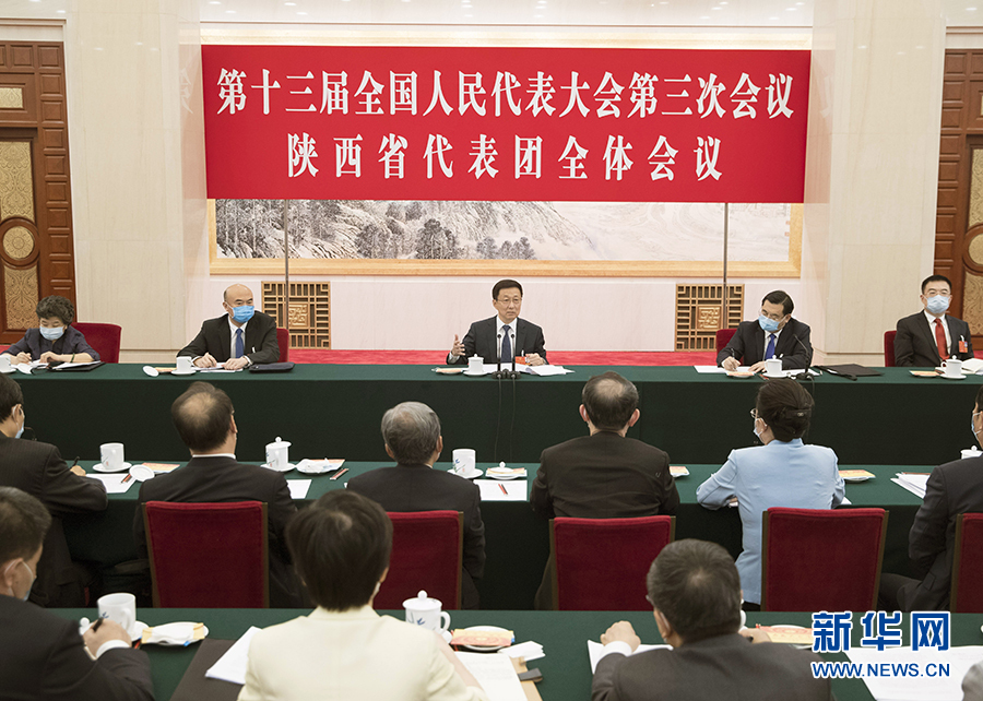 5月22日,中共中央政治局常委、國務(wù)院副總理韓正參加十三屆全國人大三次會議陜西代表團(tuán)的審議。 新華社記者 王曄 攝