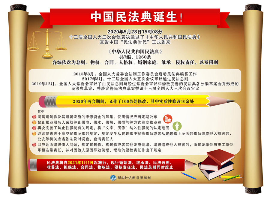 新華社北京5月28日電(記者羅沙、楊維漢)“通過!”2020年5月28日15時(shí)08分,十三屆全國人大三次會(huì)議表決通過了《中華人民共和國民法典》,宣告中國“民法典時(shí)代”正式到來。