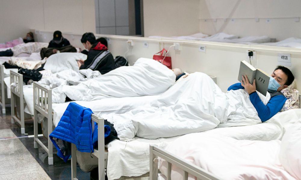 2月5日晚,一名患者在武漢“江漢方艙醫(yī)院”內(nèi)看書(shū)。新華社記者熊琦攝