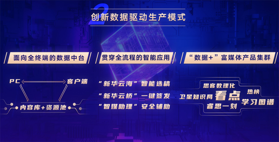 再造升級后的新華網(wǎng)突出“技術引領”,以“數(shù)據(jù)”為核心生產(chǎn)要素,為內(nèi)容制作、聚合分發(fā)、用戶運營等提供全流程支撐,實現(xiàn)生產(chǎn)模式“由外而內(nèi)”的變革。