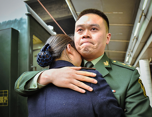 樊鼎是在一線執(zhí)勤的邊防軍人,雷云是奔波在鐵路線上的客運列車員,兩人經(jīng)過六年的愛情長跑和兩地分居,終于在2016年的元旦領(lǐng)證結(jié)婚。但由于春運臨近,他們連喜酒都沒擺、一天婚假也沒休,又各自奔赴工作崗位,忙碌起來。