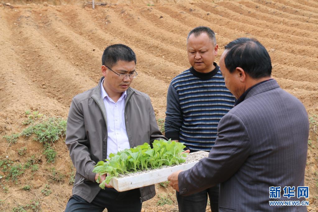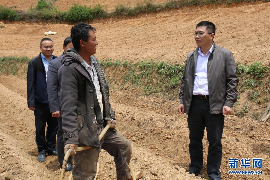 聶金輝(左)在劍川縣彌沙鄉(xiāng)調(diào)研時了解當?shù)禺a(chǎn)業(yè)發(fā)展情況(2016年4月28日攝)。新華社發(fā)(劍川縣融媒體中心供圖)