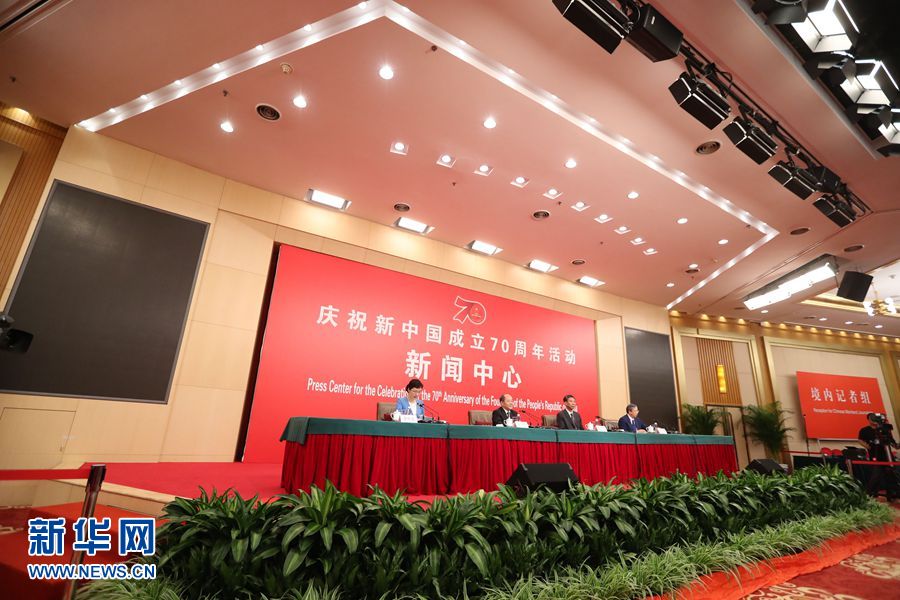 9月24日,慶祝中華人民共和國成立70周年活動(dòng)新聞中心在北京梅地亞中心二層新聞發(fā)布廳舉辦第一場新聞發(fā)布會。圖為新聞發(fā)布會現(xiàn)場。新華網(wǎng)記者 陳競超 攝