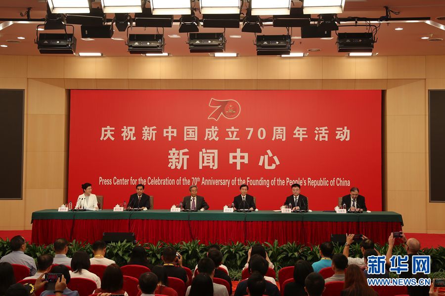9月26日,慶祝中華人民共和國(guó)成立70周年活動(dòng)新聞中心在北京梅地亞中心二層新聞發(fā)布廳舉辦第二場(chǎng)新聞發(fā)布會(huì)。圖為新聞發(fā)布會(huì)現(xiàn)場(chǎng)。新華網(wǎng)記者 郭小天 攝