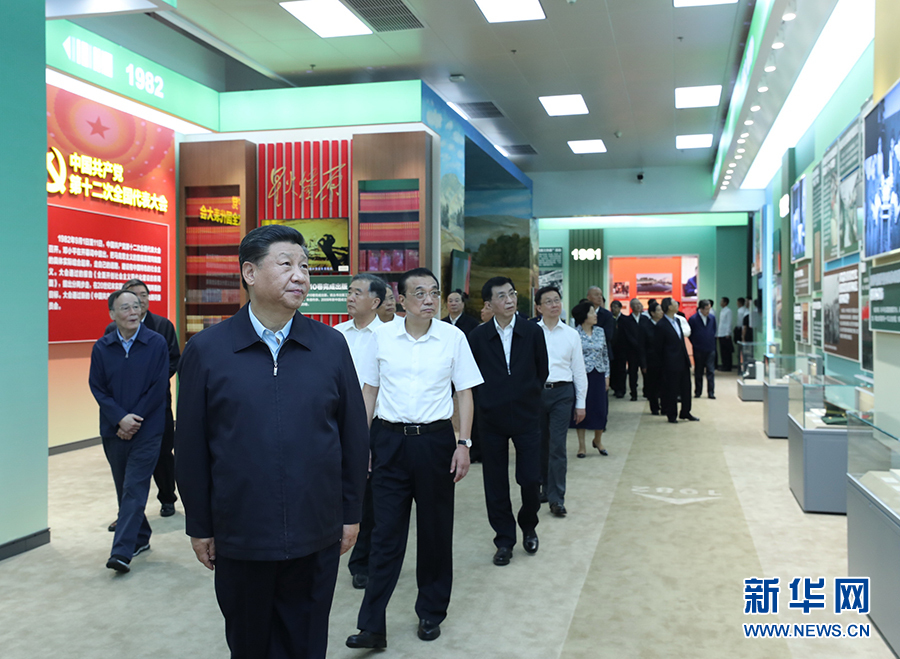 李克強(qiáng)、汪洋、王滬寧、趙樂際、韓正、王岐山參觀展覽。