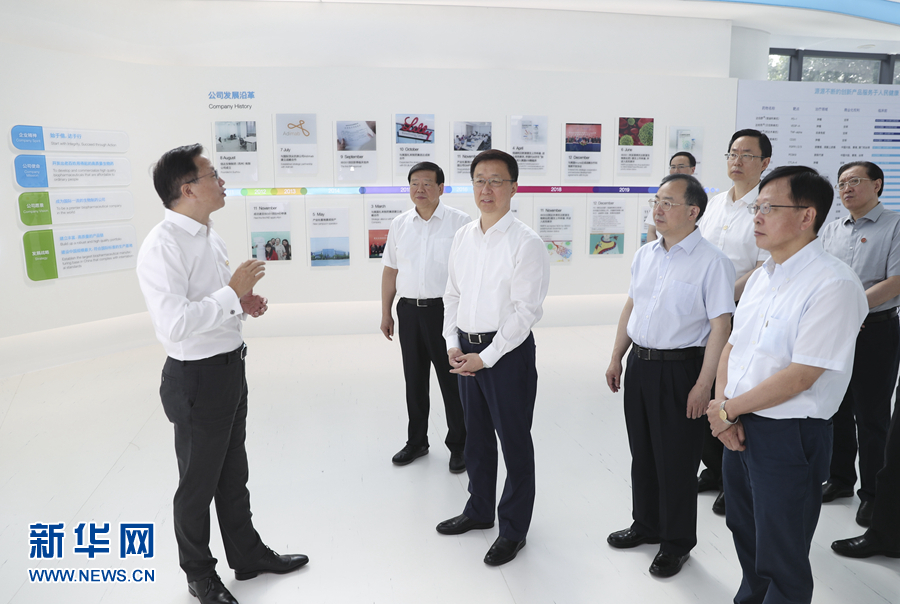 8月21日至23日,中共中央政治局常委、國務(wù)院副總理韓正在江蘇南京、蘇州、無錫調(diào)研。這是8月22日,韓正在位于蘇州的信達(dá)生物制藥(蘇州)有限公司,考察企業(yè)研發(fā)和生產(chǎn)經(jīng)營情況。 新華社記者 丁海濤 攝