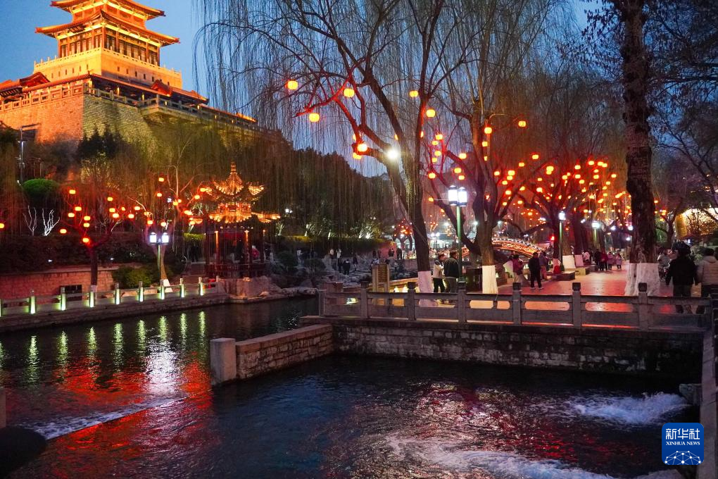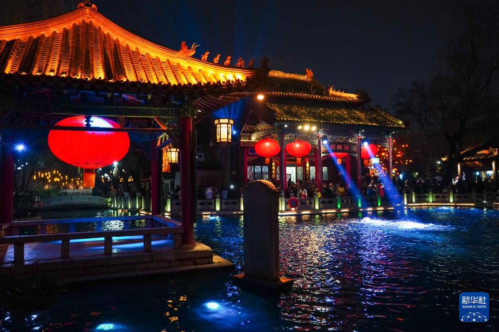 元宵佳节临近,在济南天下第一泉风景区,色彩丰富、造型多样的彩灯沿泉畔点亮,与清澈荡漾的泉水交相辉映,为城市增添了喜庆祥和的节日气氛。