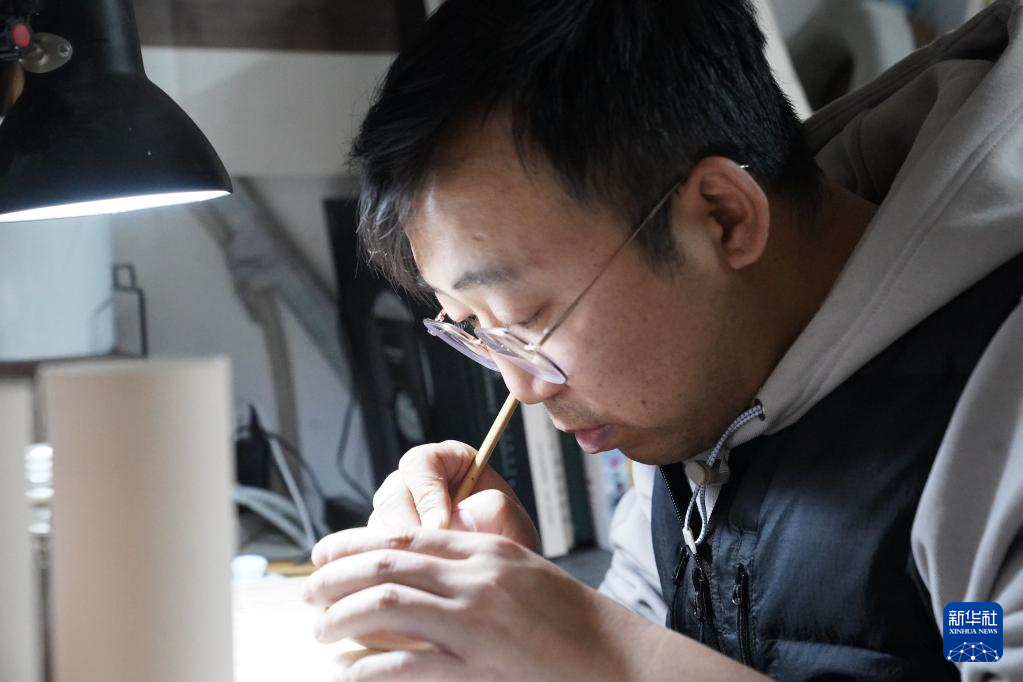 曹浪在工作室创作(3月11日摄)。