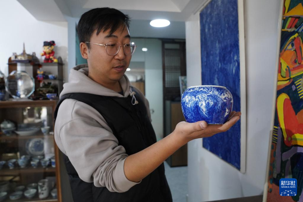 曹浪在创作青花瓷(3月11日摄)。