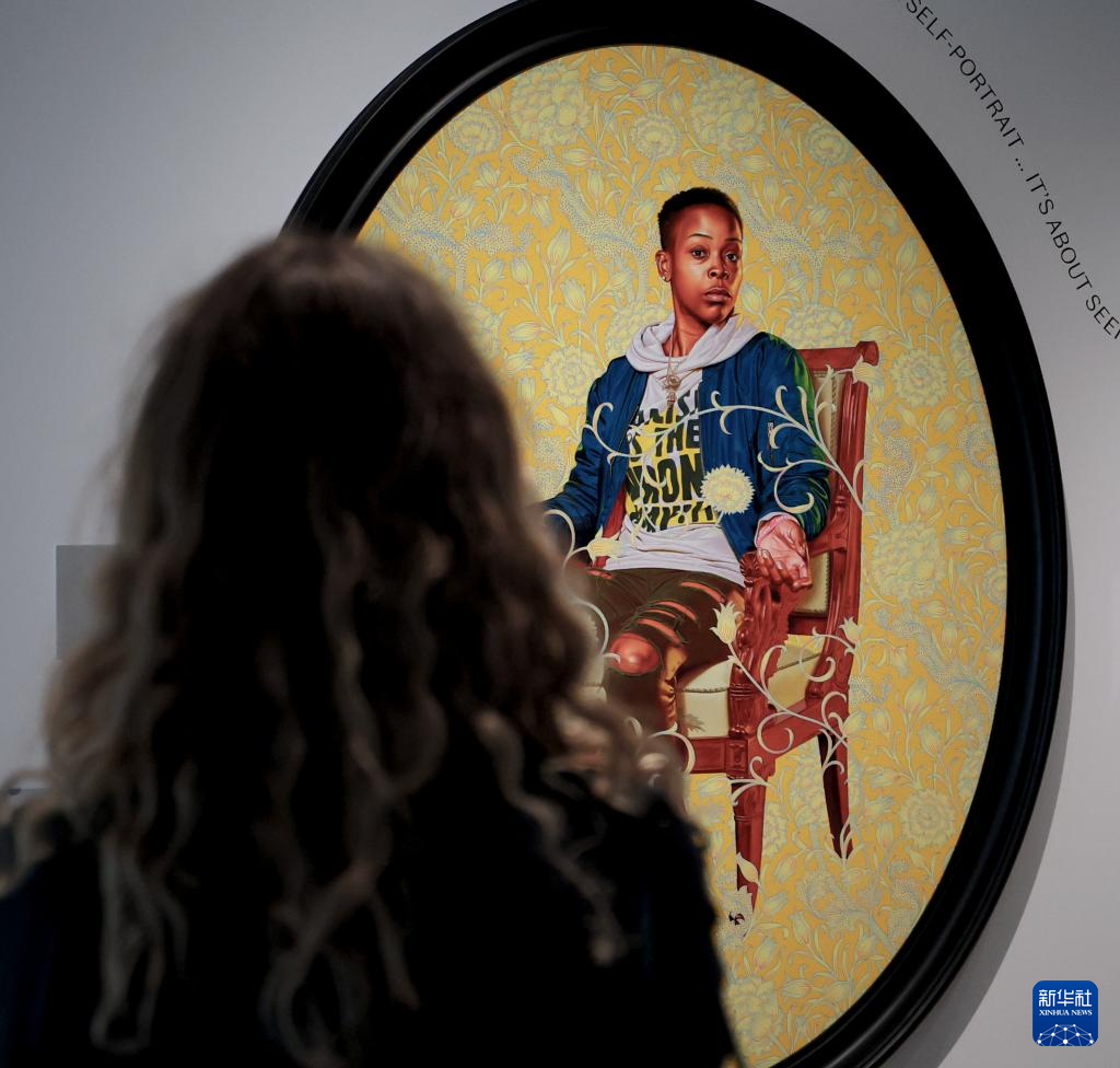 4月15日,在英国首都伦敦,一名女子在维多利亚与阿尔伯特博物馆东馆媒体日活动上观看影片。