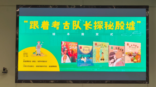 4月24日,河南省安阳市2026年“全民阅读活动周”启动仪式暨“跟着考古队长探秘殷墟”系列绘本首发式在殷墟博物馆举行。此次发布的绘本共有五册,聚焦商代传奇人物、青铜铸造、美食宴乐等不同主题,集权威性、趣味性、知识性、科学性为一体。