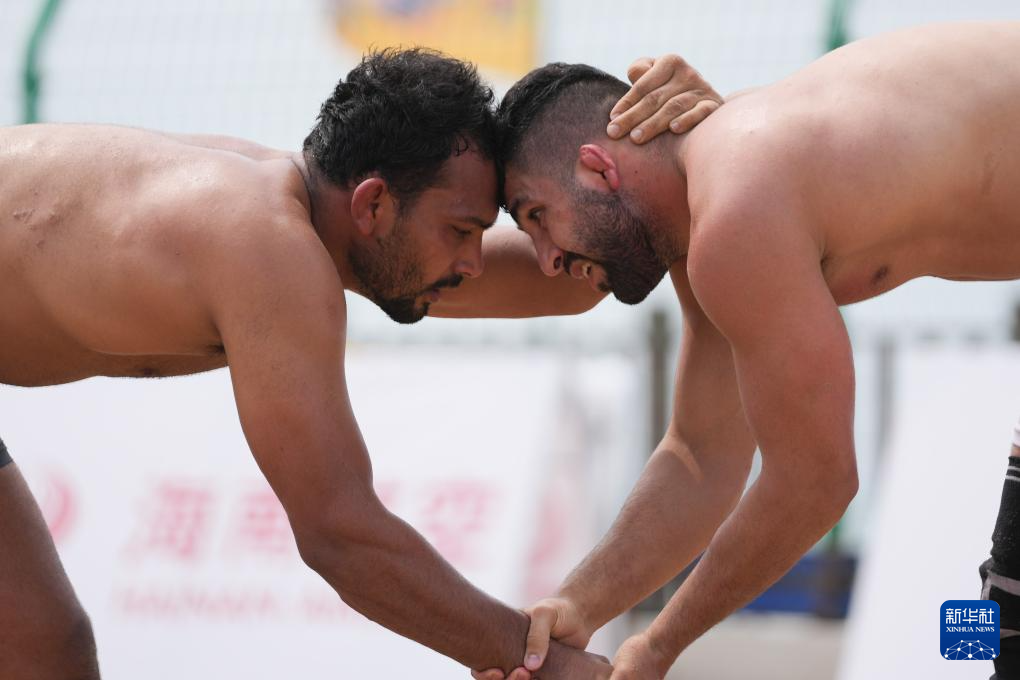 4月29日,在海南三亚举行的第六届亚洲沙滩运动会沙滩摔跤男子90公斤级金牌赛中,伊朗选手阿米尔侯赛因·卡武西战胜巴基斯坦选手穆罕默德·伊纳姆,获得冠军。