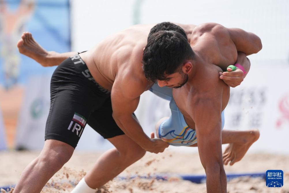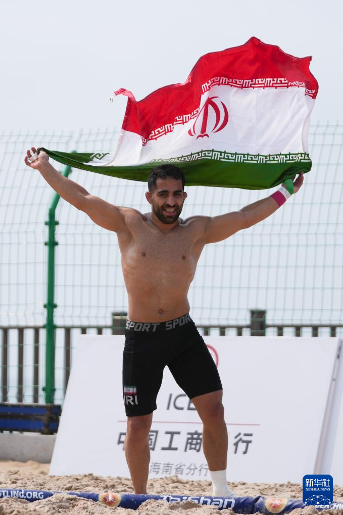 4月29日,在海南三亚举行的第六届亚洲沙滩运动会男子70公斤级金牌赛中,伊朗选手阿里阿克巴尔·扎鲁迪战胜印度选手悉达多,夺得冠军。