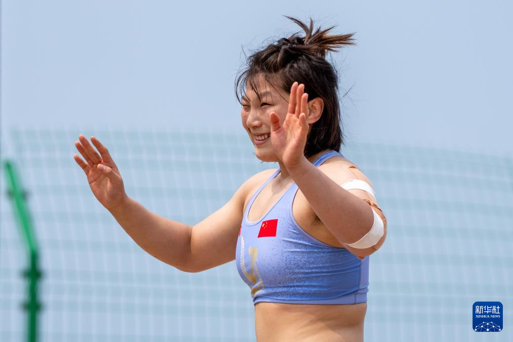 4月29日,在海南三亚举行的第六届亚洲沙滩运动会沙滩摔跤女子+70公斤级铜牌赛中,中国选手李文吉战胜哈萨克斯坦选手阿林娜·叶尔托斯季克,获得季军。