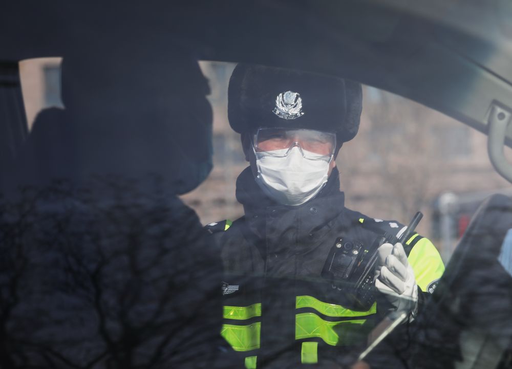 ↑1月9日,民警在檢查站核查來(lái)往車(chē)輛人員。