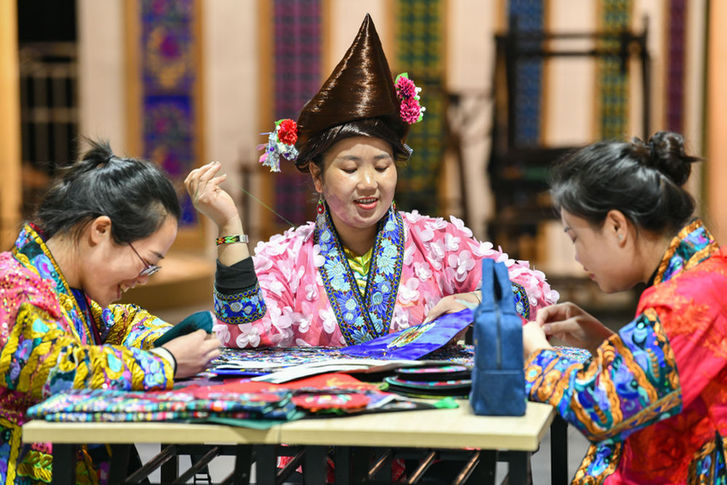 高興之余,我也面臨新挑戰(zhàn)。面對苗繡傳承、傳播青黃不接的窘境,我意識到自己有責(zé)任和義務(wù)把苗繡等苗族文化傳承下去、傳播出去。我想,我一個(gè)人的力量太小,把技藝傳給姐妹們也只能影響幾十、幾百人,如果學(xué)校、社會都參與進(jìn)來,我們下一代就會有更多的熱情和意識主動(dòng)去學(xué)習(xí)、傳承民族文化。