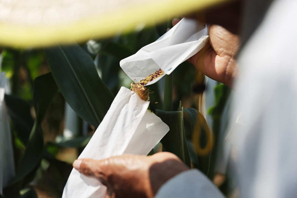 眼下的三亞陽光明媚,春意盎然。晨曦初露,程相文就戴上草帽、穿上白大褂一頭鉆進(jìn)玉米地,領(lǐng)著助手套袋、授粉,觀察葉片、根系長勢并詳細(xì)記錄,在地里一待就是五六個小時。常年高溫暴曬,程相文皮膚黝黑,摘下眼鏡后就像個農(nóng)家老漢。