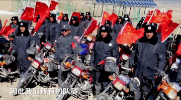 夜幕降臨高原,一天的訓(xùn)練結(jié)束。隊(duì)員們騎著車從鄉(xiāng)里散去,出發(fā)前不忘再緊一緊車尾的國旗。一輪明月懸在喜馬拉雅山脈的群山上,照亮了守邊人的回家路。