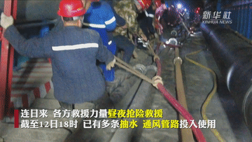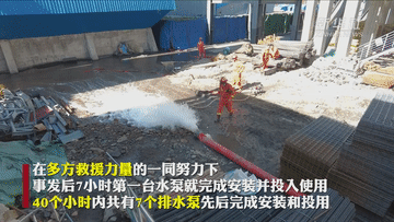 應(yīng)急、消防、電力、衛(wèi)健等多部門人員正緊張有序開展工作。在多方救援力量的一同努力下,事發(fā)后7小時(shí),第一臺水泵就完成安裝并投入使用。40個(gè)小時(shí)內(nèi),發(fā)生事故煤礦共有7個(gè)排水泵先后完成安裝和投用。