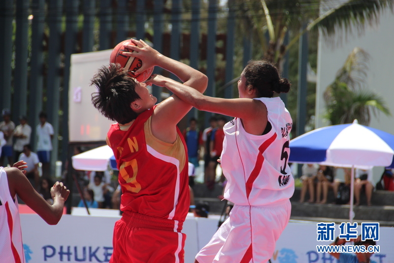 ??? 11月16日,中國沙灘籃球運動員安靜(左)在比賽中。中國體育代表團(tuán)16日在泰國普吉舉行的第四屆亞洲沙灘運動會上勇奪2枚金牌和2枚銅牌。當(dāng)天比賽全部結(jié)束時,中國隊以3金2銀5銅的成績暫列獎牌榜第五。新華社發(fā)(塔納攝)