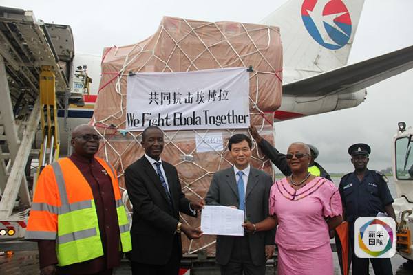 ????2014年8月11日,中國政府向塞拉利昂提供的抗擊埃博拉疫情緊急人道主義援助物資抵達(dá)塞拉利昂首都弗里敦的隆吉國際機(jī)場(chǎng)。新華社發(fā)