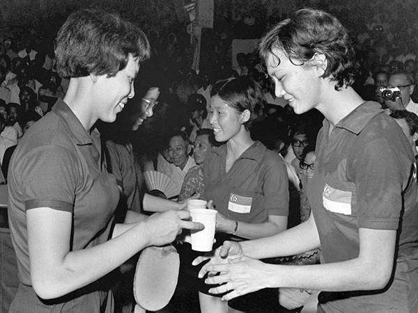 1972年7月8日至7月15日,中國乒乓球代表團(tuán)應(yīng)邀對新加坡進(jìn)行友好訪問。訪問期間,中、新兩國運(yùn)動員通過友好比賽,相互學(xué)習(xí),交流經(jīng)驗(yàn),增進(jìn)了友誼。圖為中、新兩國乒乓球運(yùn)動員在比賽場上。
