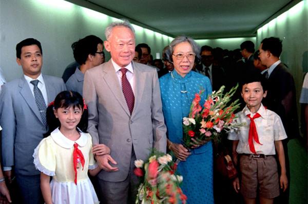 1985年9月13日至25日,應(yīng)中國政府邀請,新加坡總理李光耀和夫人對中國進(jìn)行了正式友好訪問。圖為9月13日,李光耀總理和夫人乘飛機(jī)到達(dá)上海時,上海少先隊(duì)員向新加坡貴賓獻(xiàn)花。