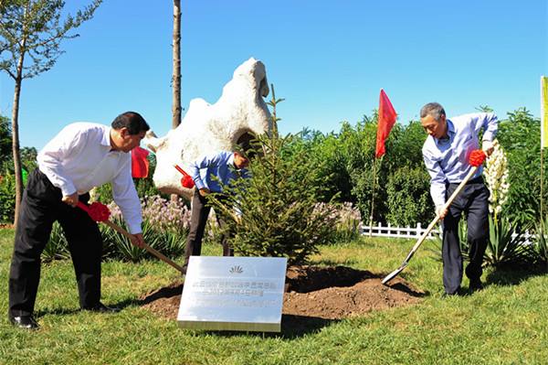 2012年9月4日,新加坡總理李顯龍(右一)在中新天津生態(tài)城永定洲文化主題公園與中方共同植下一株象征合作與友誼的云杉樹。 當(dāng)日,正在對中國進(jìn)行正式訪問的新加坡總理李顯龍來到天津參觀訪問。 新華社記者張超群攝