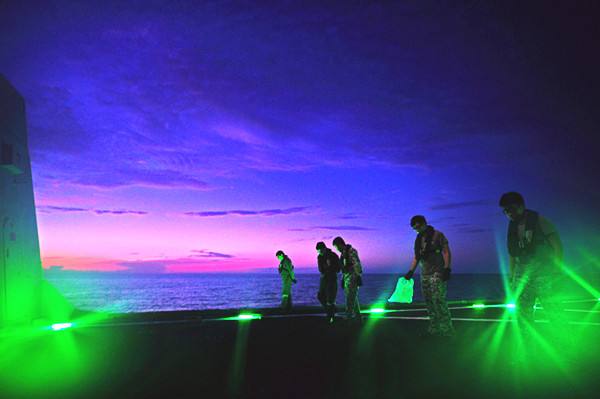 圖為 2015年5月25日,新加坡海軍“剛毅”號護(hù)衛(wèi)艦士兵進(jìn)行直升機(jī)起降準(zhǔn)備工作。當(dāng)日,中國海軍“玉林”號導(dǎo)彈護(hù)衛(wèi)艦與新加坡海軍“剛毅”號護(hù)衛(wèi)艦、“奮勇”號導(dǎo)彈巡邏艦在馬來半島以東海域順利完成了代號為“中新合作-2015”的海上雙邊軍事演習(xí)。這是中新兩國首次進(jìn)行的雙邊海上軍事演習(xí)。