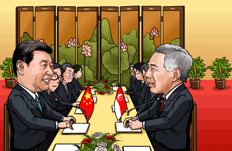 中國(guó)和新加坡是親密友好鄰邦,建交25年來(lái),兩國(guó)關(guān)系日益密切,各領(lǐng)域交流與合作不斷深化拓展,為兩國(guó)和兩國(guó)人民帶來(lái)福祉,也為地區(qū)和平穩(wěn)定、發(fā)展繁榮作出了積極貢獻(xiàn)。習(xí)主席此訪成果豐富,意義重大,在新的歷史起點(diǎn)上規(guī)劃兩國(guó)關(guān)系未來(lái),為兩國(guó)互利合作開(kāi)辟前景。習(xí)近平此訪還向東盟重申了中國(guó)堅(jiān)持走和平發(fā)展道路、堅(jiān)定發(fā)展同東盟友好合作的一貫立場(chǎng),歡迎東盟搭乘中國(guó)發(fā)展“快車(chē)”、“便車(chē)”,共同推進(jìn)“一帶一路”建設(shè),攜手實(shí)現(xiàn)和平、發(fā)展、合作的愿景。(作者系中國(guó)社會(huì)科學(xué)院世界經(jīng)濟(jì)與政治研究所國(guó)際政治經(jīng)濟(jì)學(xué)研究室副主任徐秀軍 漫畫(huà)作者李峰)