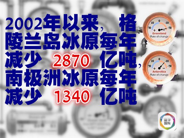 科學(xué)家認(rèn)定,由于氣溫和海水溫度升高的雙重影響,分別位于格陵蘭島和南極洲的地球兩大冰原正在消失。美國國家航空航天局噴氣推進(jìn)實(shí)驗(yàn)室收集的衛(wèi)星數(shù)據(jù)顯示,2002年以來,格陵蘭島冰原每年減少2870億噸,南極洲冰原每年減少1340億噸。
